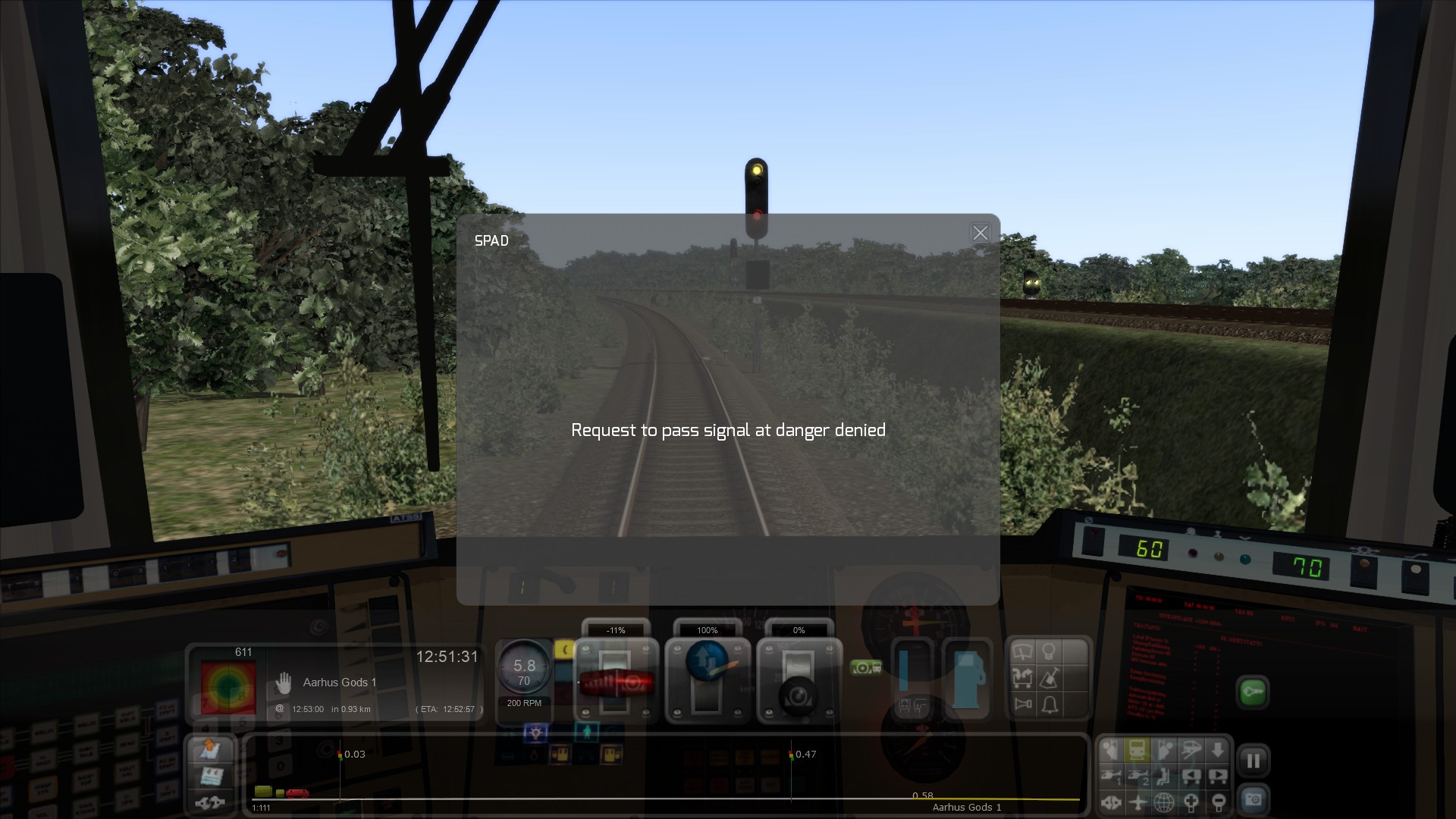 Lad mig lige tilføje en lille ting, train simulator har aldrig kunnet lide at ende togveje i dværgsignaler, da de oftest overses af hovedsignalerne med mindre der ikke tilføjes en mulig togvej i signalets opstilling så TAB er nødvendigt. Det er Train Sims dispatcher der virker sådan, og det er som regel kun meget kompliceret og dybdegående scripts som er skrevet til sådanne situationer. Prøv at sætte sporskifterne i den anden ende, så togvejen ender i en hovedsignal eller i et sporstop.