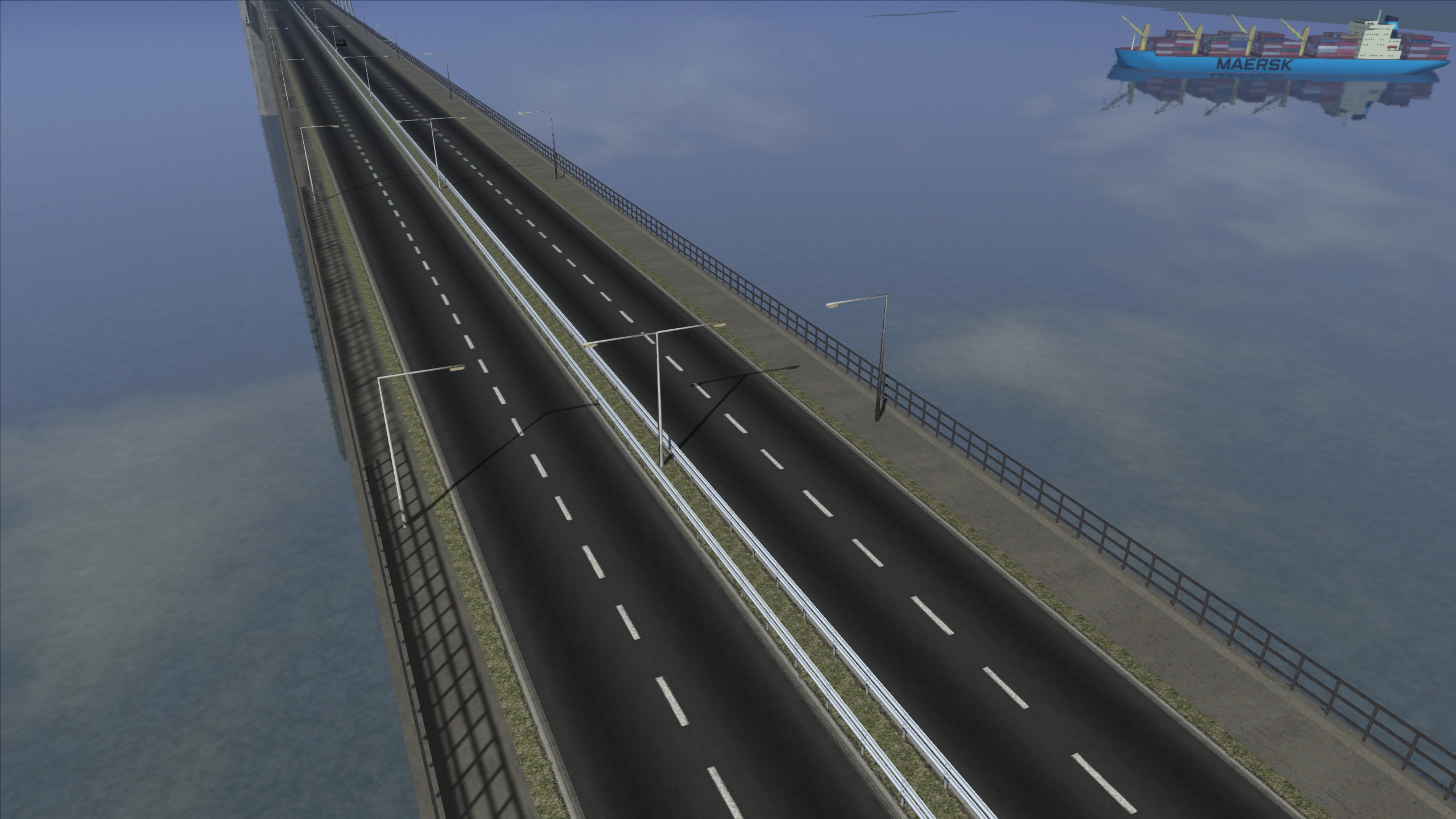 Den dér lille Mærsk ting der er med på billeder har også fået lys ombord. Den er lavet som i virkeligheden med lys i toppen af kranmasterne, men det ses af guds uransagelige årsager KUN i mørke