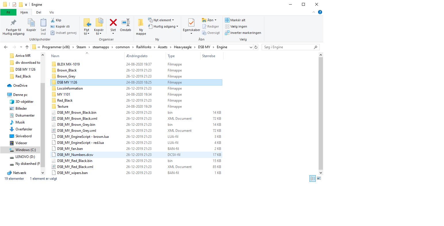 Så vidt jeg kan se mangler du filen DSB MY 1126.bin, som er i RAR filen. Hele indholdet i RAR filen skal overføres.